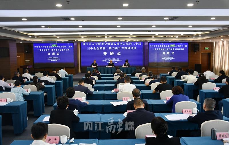 10月22日,内江市人大常委会组成人员学习党的二十届三中全会精神、能力提升专题研讨班开班。市人大常委会党组书记、主任戴震出席开班式并作动员讲话。
