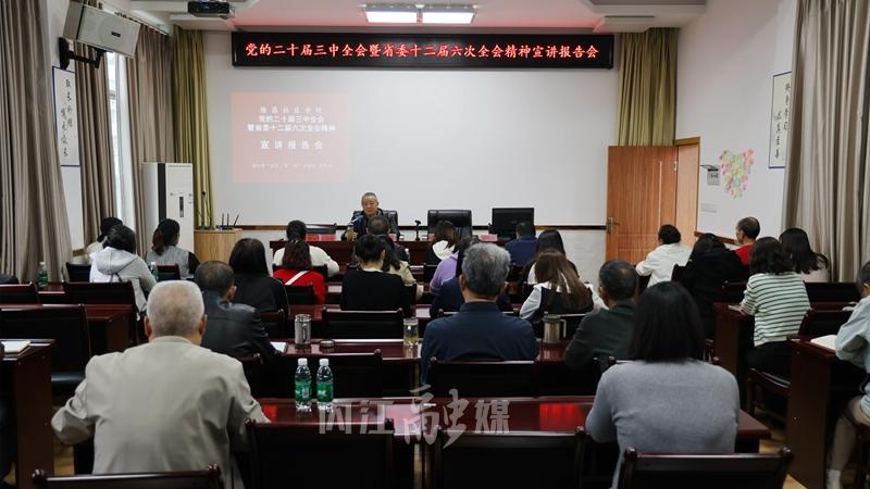 10月21日,内江市“范长江流动大讲堂”基层理论普及团队——“社区‘家’话”宣讲小分队走进隆昌社区学院,向隆昌社区学院、隆昌市社区学校、学习中心的党员干部和社区居民代表,宣讲党的二十届三中全会暨省委十二届六次全会精神。