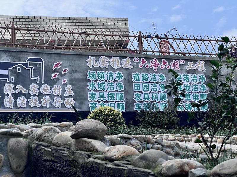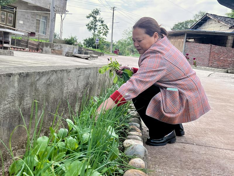 就地取材、因地制宜,是学习运用“千万工程”经验的精髓之一,也是内江农村面貌改善坚持的原则。村民们全员行动起来,拆除杂房畜棚,改造家门口的烂泥地。我来了才发现,村民们把旧水缸、旧砖石、旧瓦片也利用起来,布局小巧精致,一簇簇鸡冠花在路边盛放,红火似霞,装点着村民们共同改建的家园。