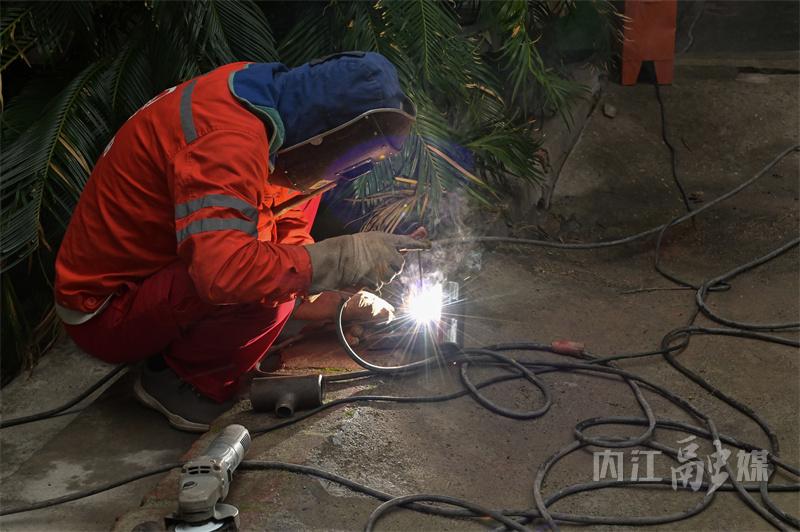 掏沟、打磨、焊接、安装……11月12日,记者在内江市东兴区锦绣花园一期小区看到,这里正在进行老旧小区改造(燃气部分)施工,工人们有序配合安装燃气管道,现场一片火热的施工景象。