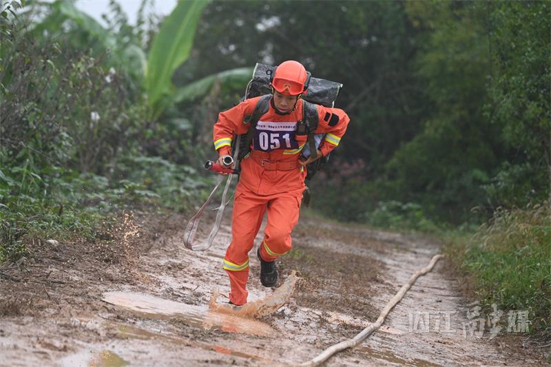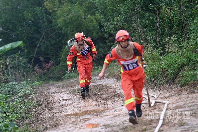 除了专业综合技能竞技外,负重行军、野外火场勘察和水泵架设与撤收等科目也极具挑战性。在负重行军中,选手们需要背上单兵作战背架负重20斤跑完5公里,极大地考验了他们的体能和意志力。