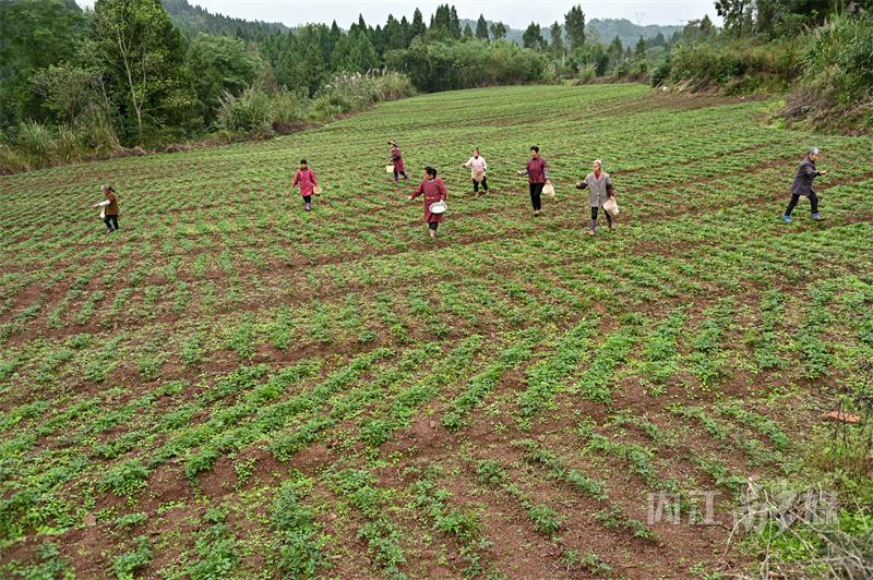 近日,内江市东兴区高梁镇方家沟村栽种的60亩中药材——沙参进入施肥期。11月19日上午,当地村民正在沙参种植基地有序施肥。