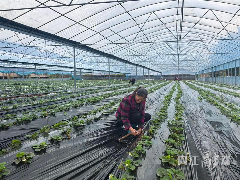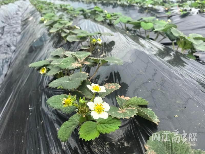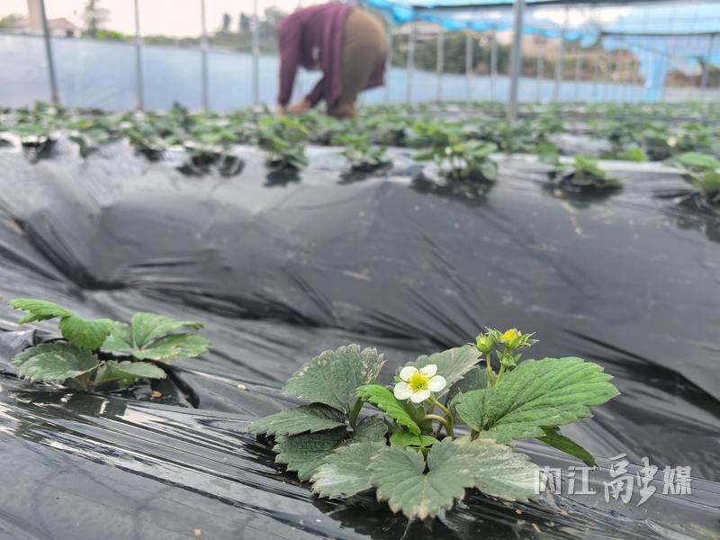 眼下,草莓进入开花期,也正是草莓管护覆膜的关键时期。在资中县明欣园种植农民专业合作社基地,工人们正抢抓有利时机,加强田间管理,为日后草莓的“高颜值”亮相做足准备。