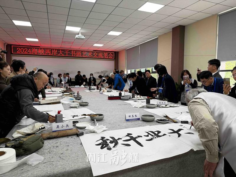 浓厚的艺术氛围和深厚的文化底蕴激发出更多的创作灵感。当天,两岸书画家及艺术爱好者纷纷挥毫泼墨,以笔墨寄托情怀,开始即兴创作——2024海峡两岸大千书画艺术交流笔会拉开序幕。