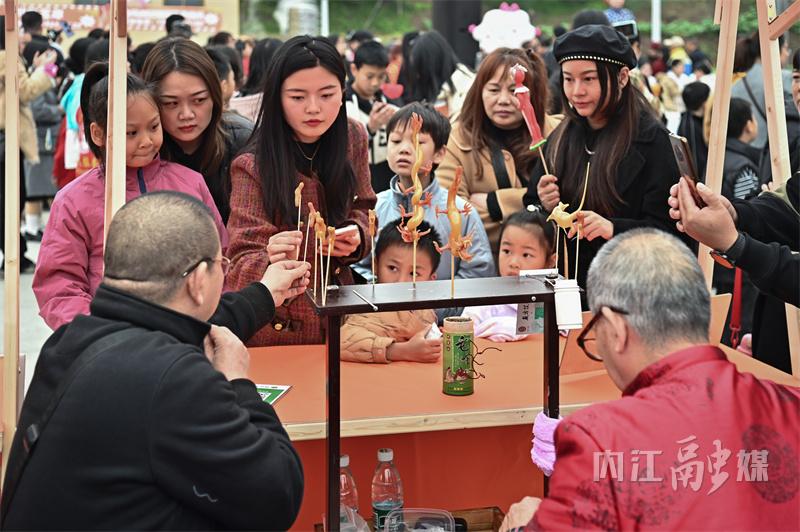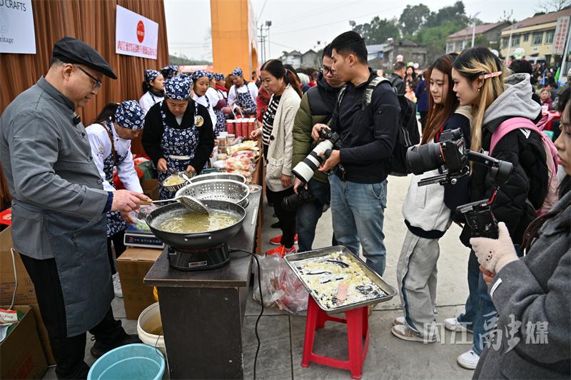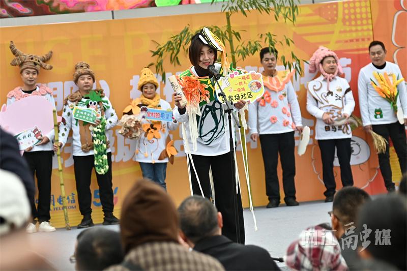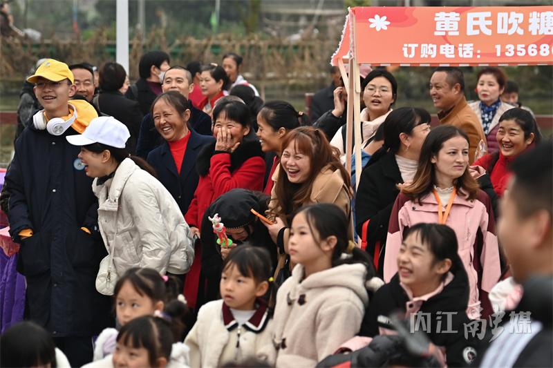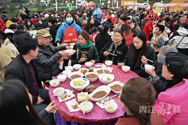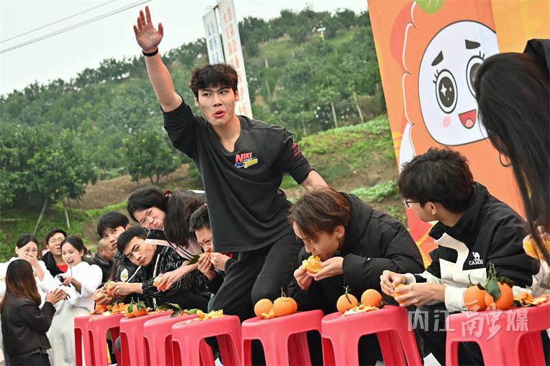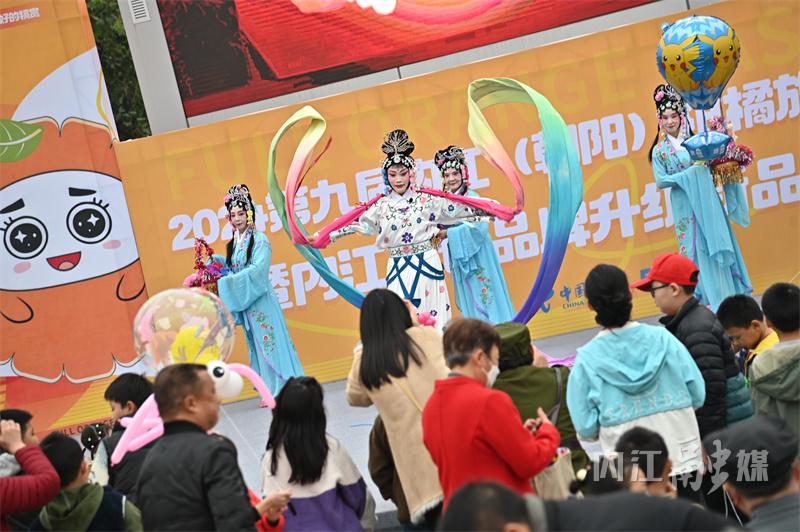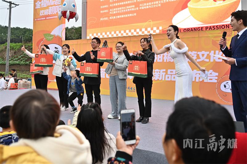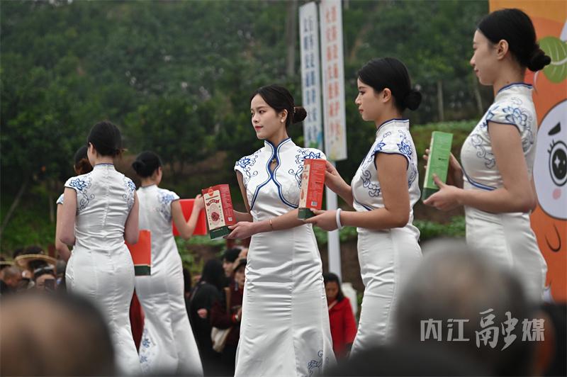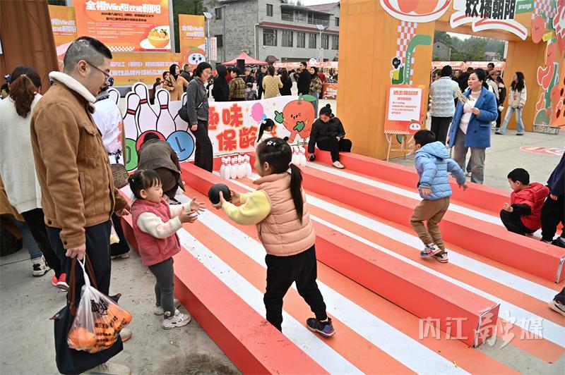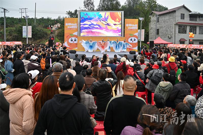 吃柑橘比赛、村干部农特产品T台秀、小丑魔术秀、京剧舞蹈……活动现场精彩节目轮番登台,围观群众乐享“视听盛宴”;汉安烙画、马氏酥枣兔、雷氏蛋壳画、汉安夏布绣、甜城蔗酒、黄氏吹糖……各类特色非遗产品琳琅满目,游客争相体验购买;凉拌猪耳朵、回锅肉、水煮牛蛙、香碗、烧白……“百桌坝坝宴”香飘十里,游客纷纷入场大快朵颐;趣味保龄球、套圈、丢沙包、有奖问答……游园游戏丰富多彩,大家踊跃打卡抽奖;金黄柑橘挂满枝头,游客络绎不绝走进柑橘园,体验乡村采摘的乐趣。