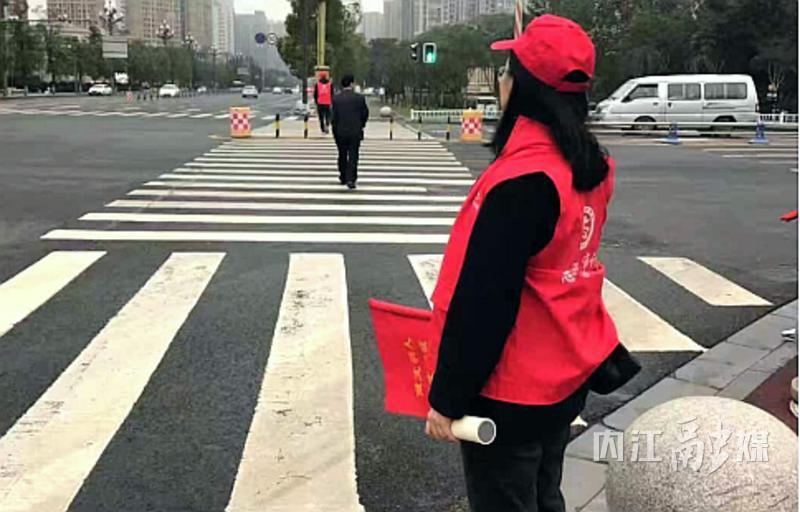 “请稍等,现在是红灯,请遵守交通规则。”“绿灯亮了,行人可以通过,非机动车请注意走专用道。”11月25日下午,在东兴区大千路与玉屏路的交叉口,来自内江市审计局的干部职工身穿红色马甲正忙碌地进行着交通劝导工作。