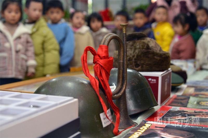 此次展出的红色文化藏品包括宣传画、画报、奖章、纪念章、钢盔、军帽、军号、搪瓷茶盅、手风琴、奖状、连环画和照片等227件。丰富的藏品和英雄的故事,吸引了孩子们浓厚的兴趣。