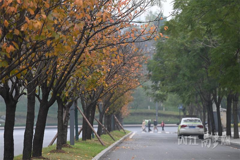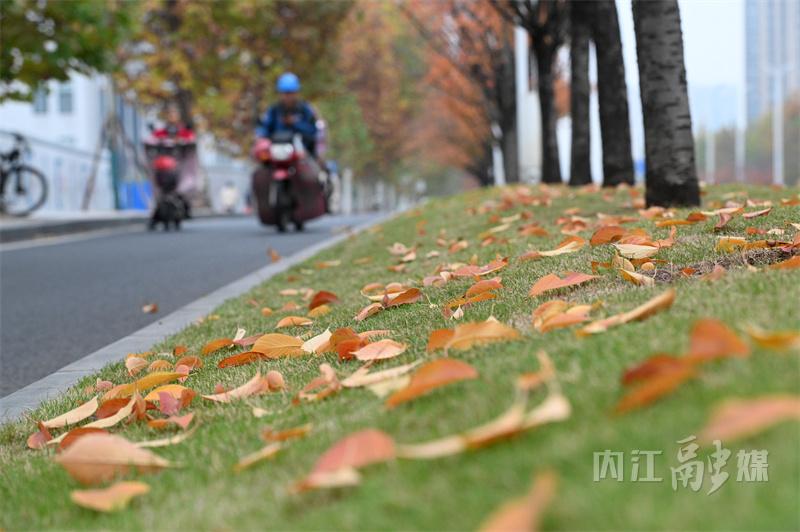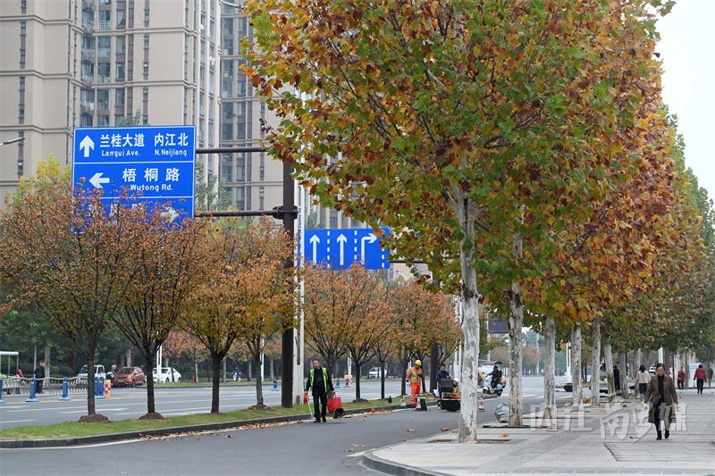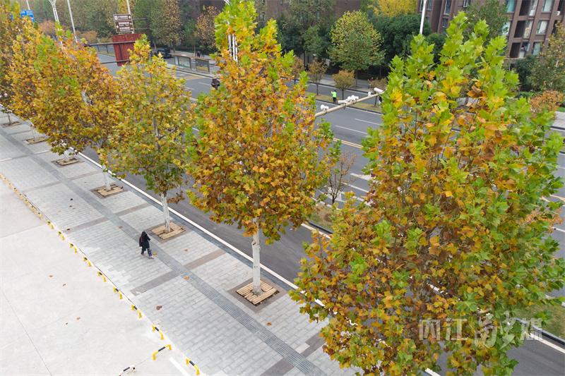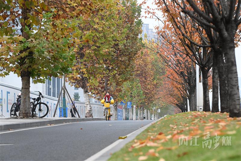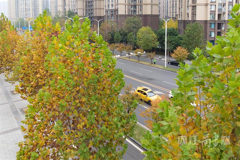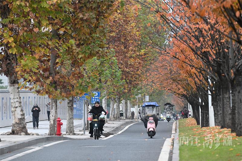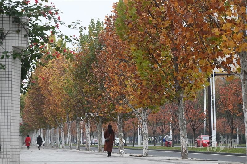 冬日时节,内江市东兴区北环路两旁的梧桐树悄然换上了金黄色的外衣,次第渐黄的梧桐树叶格外引人注目,宛如一幅绚丽的画卷,吸引了无数市民驻足观赏,也为城市增添了一道别样的风景线。
