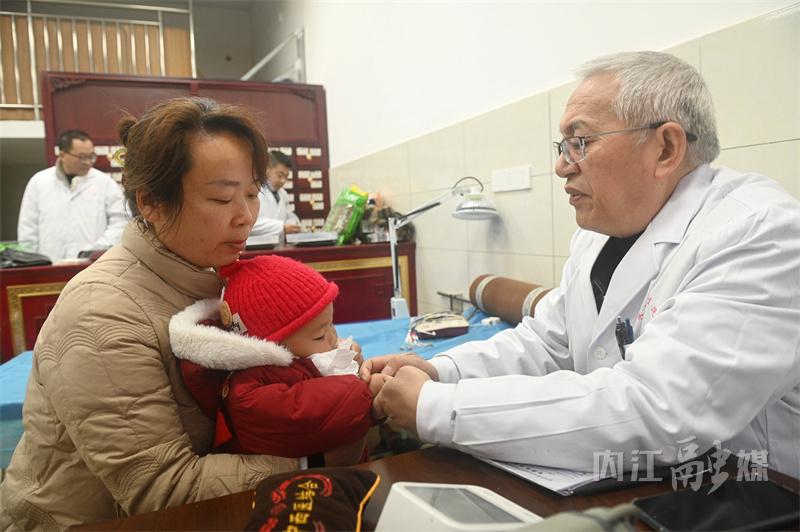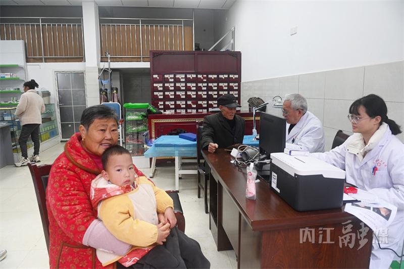 12月4日,内江市东兴区永福镇东岳社区,村民在医疗救治站内看病就医。