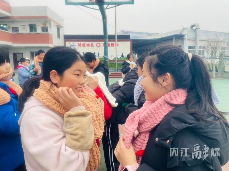 不久前,市中区教体局、团区委、区红十字会、内江师范学院、赤橙公益共同发起“线织赤橙,围爱暖冬”——冬季关爱乡村儿童公益活动,由内江灵犀社会工作服务中心召集一批大学生志愿者为乡镇学生编织暖心围巾。尽管期末学习时间紧张,志愿者们仍用心制作,把对孩子们的爱一针一线织进了围巾里。