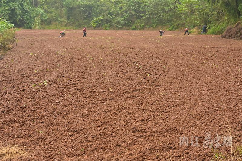 12月5日,内江市东兴区高梁镇方家沟村,村民正在中药材基地播种鸢尾。