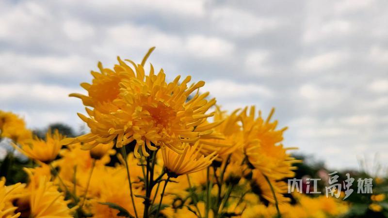 12月5日,记者走进川秦药业(内江)有限公司精心打造的菊花种植基地,只见漫山遍野的菊花在阳光下熠熠生辉,它们或含苞待放,或盛开正艳,宛如一片片翻涌的金色波浪,随风轻摇,散发出淡雅而清新的香气,让人心旷神怡,沉醉不已。