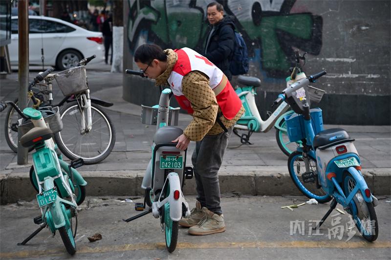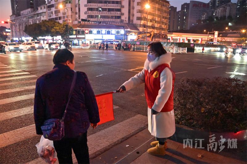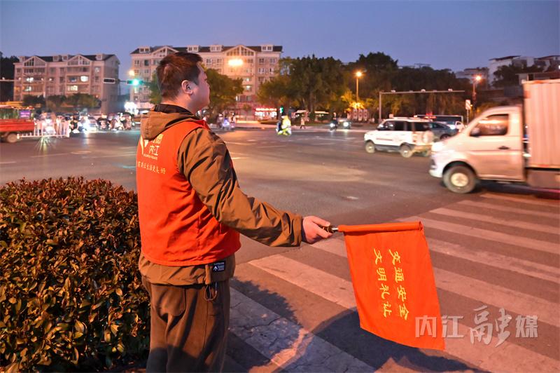 当日下午,来自市邮政管理局、市红十字会、内江日报社等单位的志愿者身着红马甲,在市中区民族路、上南街、松山南路等值守路段,开展沿街巡逻劝导、卫生维护、路口值守等文明劝导志愿服务。