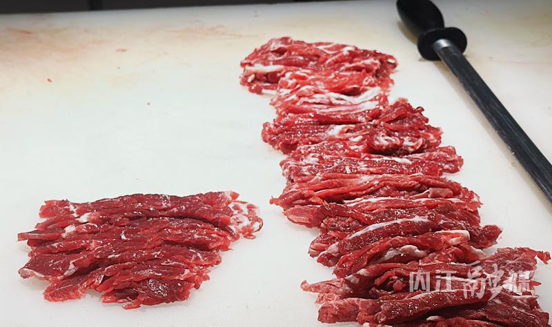 装修是外在体现,牛肉则为内在精髓。跟随曾丹走进后厨,厨师娴熟的刀工给人留下了深刻印象:即便佩戴手套,厨师也能靠灵敏的触觉,感受整块牛肉上的纹路,一刀刀斜切下去,每片肉的厚薄程度近乎一致。