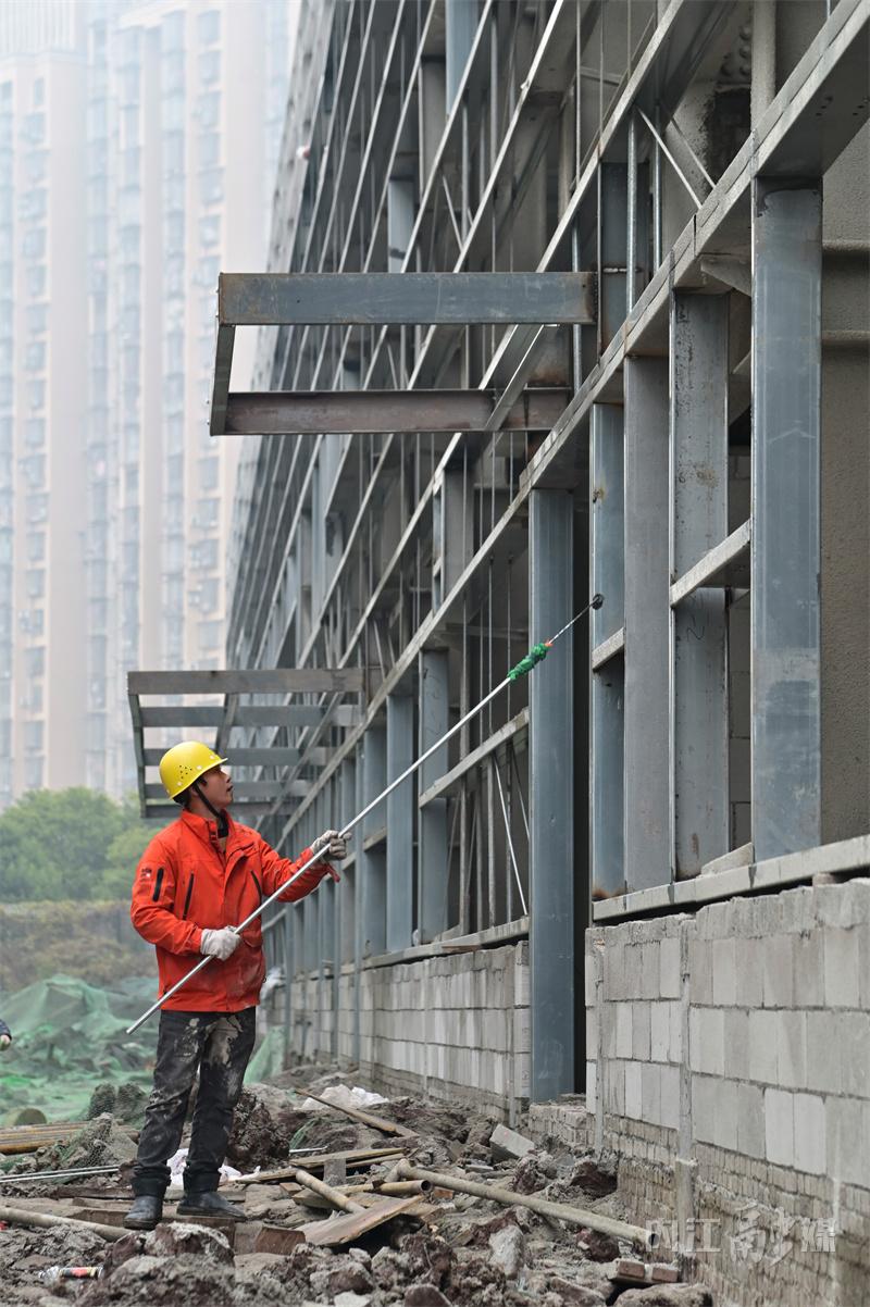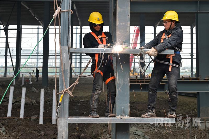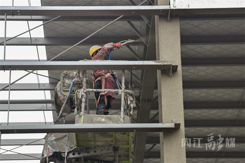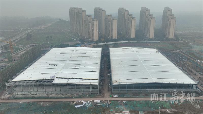 12月19日,记者在位于内江经开区的四川央普年产60万吨全智能化乳制品及果蔬饮料产业园项目现场看到,工人们有的在砌墙、抹灰,有的在进行上下水安装,有的在进行钢结构吊装……其间塔吊林立,各类运输车辆往来穿梭,机械设备轰鸣不断,现场一派繁忙景象。