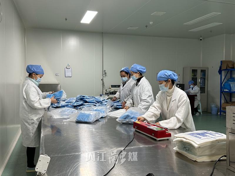 刘君介绍,目前,公司具备年产棉签4.5亿支、口罩2000万只、手术单和垫单100万张、纱布块300万张的生产能力,客户覆盖省内上百家医疗机构和商贸公司,是内江市规模最大的医疗耗材生产制造企业。2024年上半年,公司实现产值约2000万元。