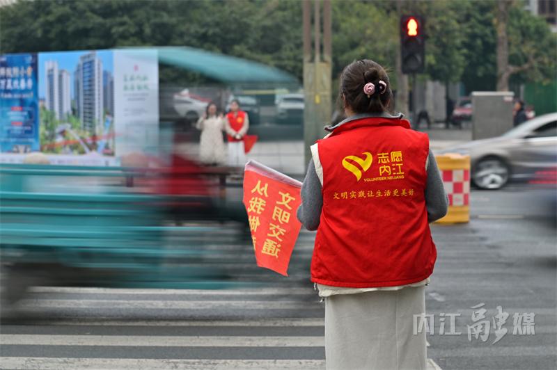 “文明交通,人人参与;交通文明,人人受益。作为一名党员志愿者,我很高兴能参与到此次文明交通引导志愿服务中,我们不仅做文明出行的实践者,也做文明出行的推动者。相信在所有志愿者和行人的共同努力下,我们的城市将变得更加安全、有序、和谐,让文明交通成为内江最靓丽的一道城市风景。”市财政局志愿者蔡梦月表示。