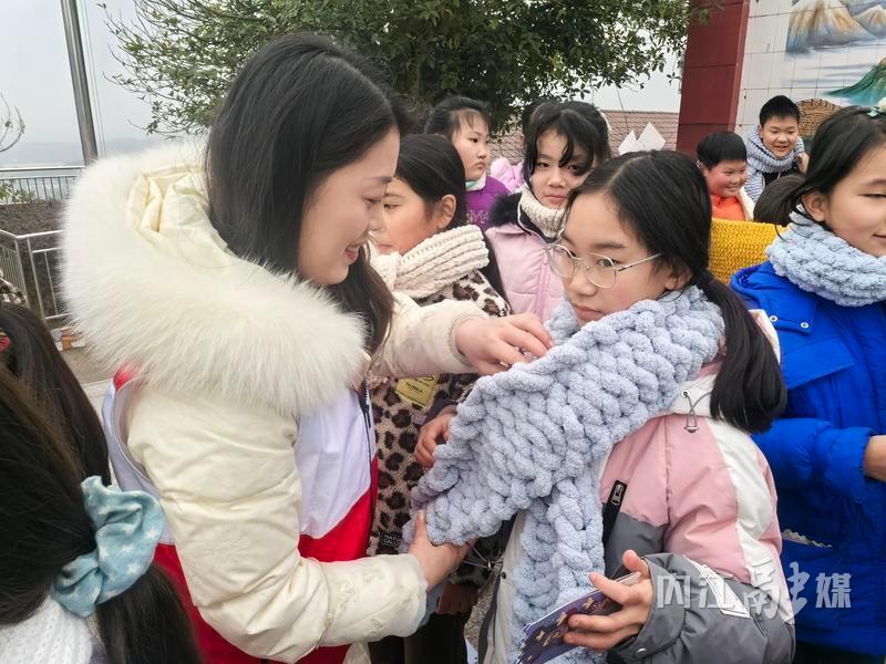 学生们戴着围巾高兴地表示,很开心收到这么好看又暖和的围巾,感谢叔叔阿姨的关心,今后一定会好好读书,做一个有爱心、对社会有用的人。