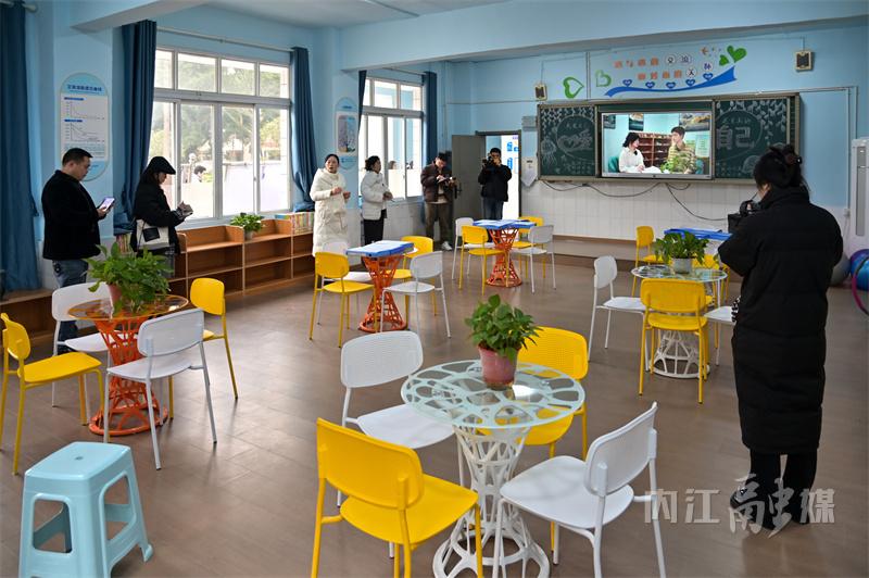 随后,采访团来到隆昌古湖街道综合为老服务中心。这里的装修风格整体以暖黄色调为主,显得很温馨,沙发座椅舒适,健身器械整齐排列,认知障碍干预室、棋牌活动室、书画室等设施设备一应俱全。老人们三五成群聚在一起,或悠闲聊天,或看电视节目,或在工作人员的带领下进行手工制作。