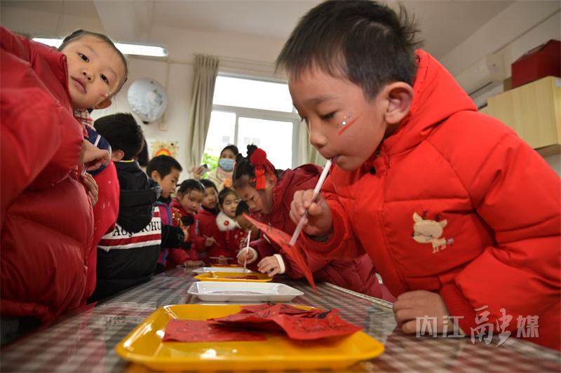 内蕴希望 江涌春潮|画蛇摸福“吸福气”、拓印剪纸“绘新春”,内江萌娃欢乐迎新年!