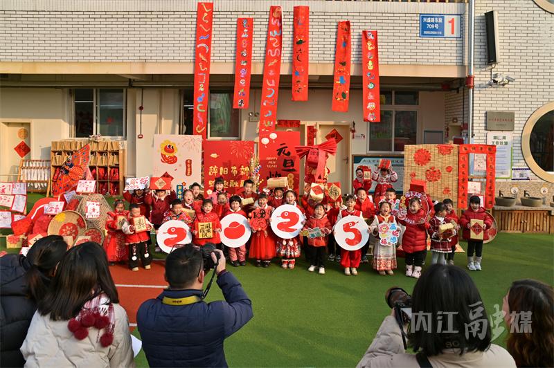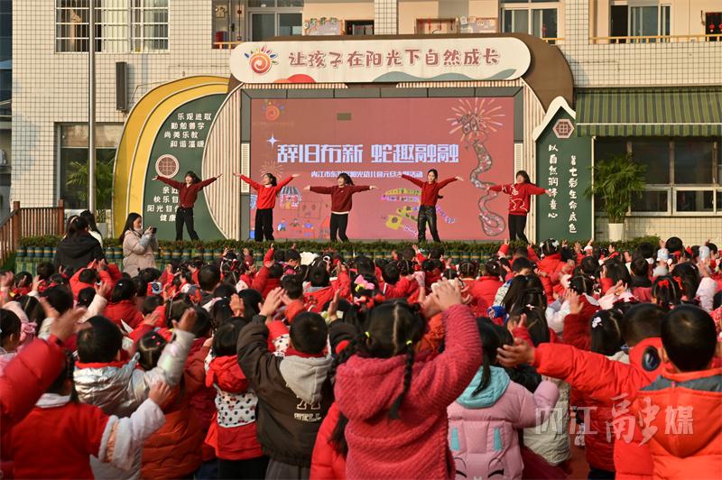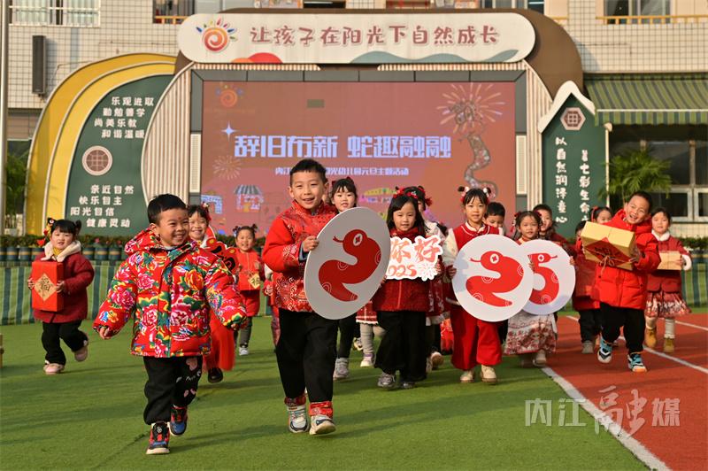 画萌蛇、画脸谱、拓印、剪纸、吸福传福、蒙眼摸福……12月30日上午,内江市东兴区阳光幼儿园开展“辞旧布新 蛇趣融融”元旦迎新趣味活动,师生一起在多彩的趣味民俗活动中快乐迎新年。