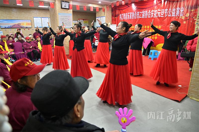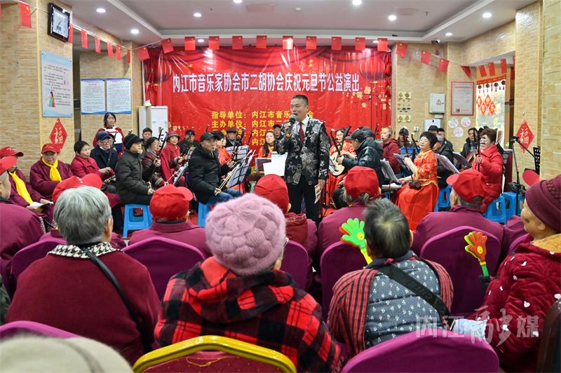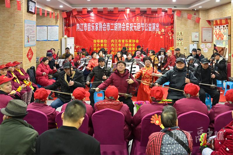12月29日,“内江市音乐家协会市二胡学会庆祝元旦节公益演出”举行,来自市二胡学会及老年大学的乐器演奏家、文艺表演爱好者走进内江市福寿康养院,在这辞旧迎新之际,为老人们献上一个个精彩节目,共同庆祝即将到来的元旦佳节。