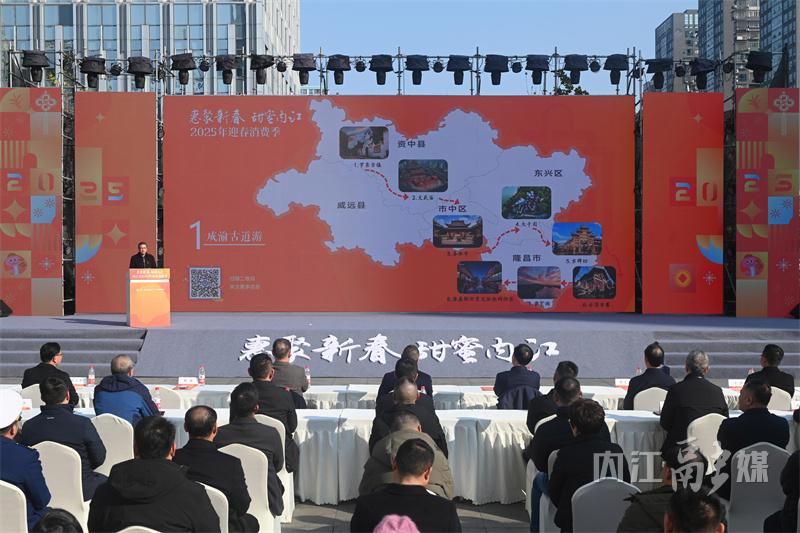 启动仪式上,内江市领导发表了热情洋溢的致辞,市级有关部门先后发布了迎春消费季促销、文旅、体育活动攻略;相关单位现场发布促消费“惠民大礼包”。