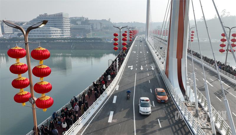 当天上午,大桥两侧分别悬挂着一排大红灯笼,充满喜庆的氛围。市民们纷纷从各地赶来目睹这一历史时刻。“盼了好久,麻柳坝大桥终于通车啦!”家住市中区的市民杨杰在东兴区工作,高峰期总是面临堵车的困扰,现在多了条道路,他表示不再担心上班迟到了。