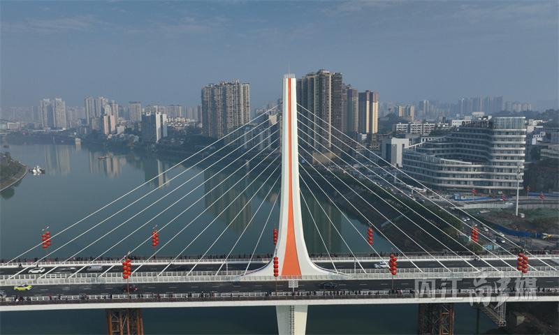 据了解,内江麻柳坝大桥由中铁九局承建,大桥及连接线项目于2022年1月开工建设,总投资约10.24亿元,2024年12月31日10时通车试运行。道路全长1125米,全线双向六车道。项目建设内容包括麻柳坝大桥、新江路立交、河坝街立交和文英街改造等。
