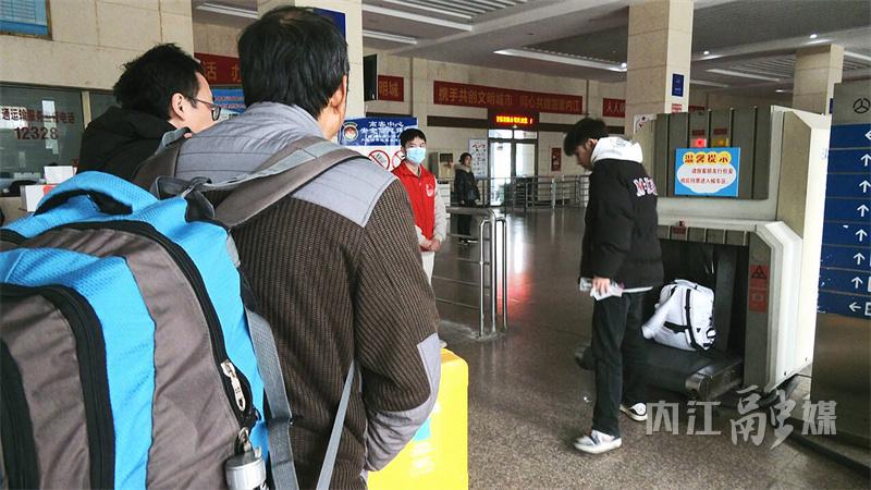 当天上午,在内江高速公路客运中心,旅客们有序在人工售票窗口购票;车站入口处,安检工作人员通过安检机仔细检查旅客行李;志愿者引导旅客有序检票,积极帮助“老弱病残孕”等重点旅客乘车。