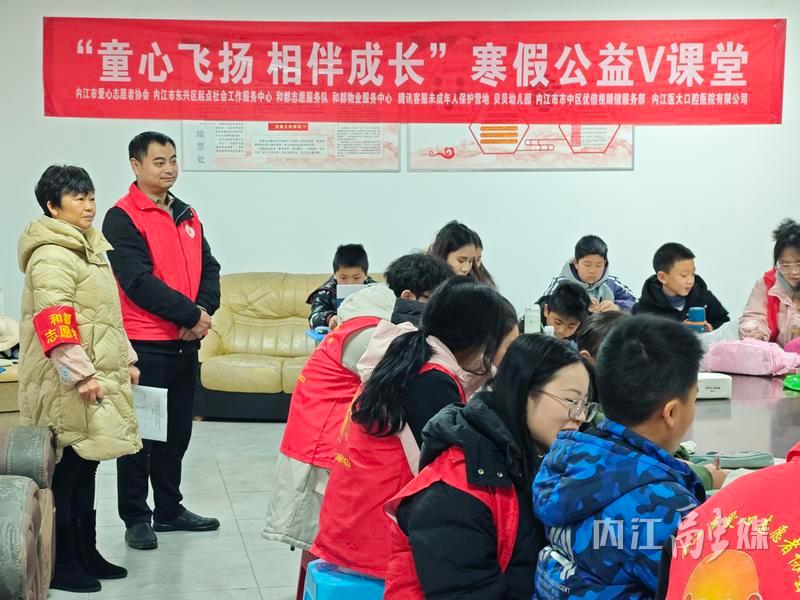 据了解,此次V课堂是内江市爱心志愿者协会携手和都志愿服务队打造的一个新时代文明实践项目,召集寒假返乡的大学生组建支教团队,利用假期时间,以“一对一”或“一对多”的形式,为我市青少年儿童进行课业辅导,做到有疑必问,有问必答,有错必纠,使孩子们的学习得到提升。