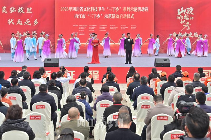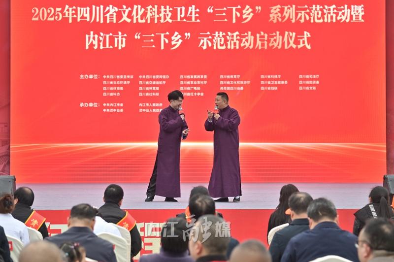 1月21日,2025年四川省文化科技卫生“三下乡”系列示范活动暨内江市“三下乡”示范活动在资中县苌弘大剧院外广场启动。