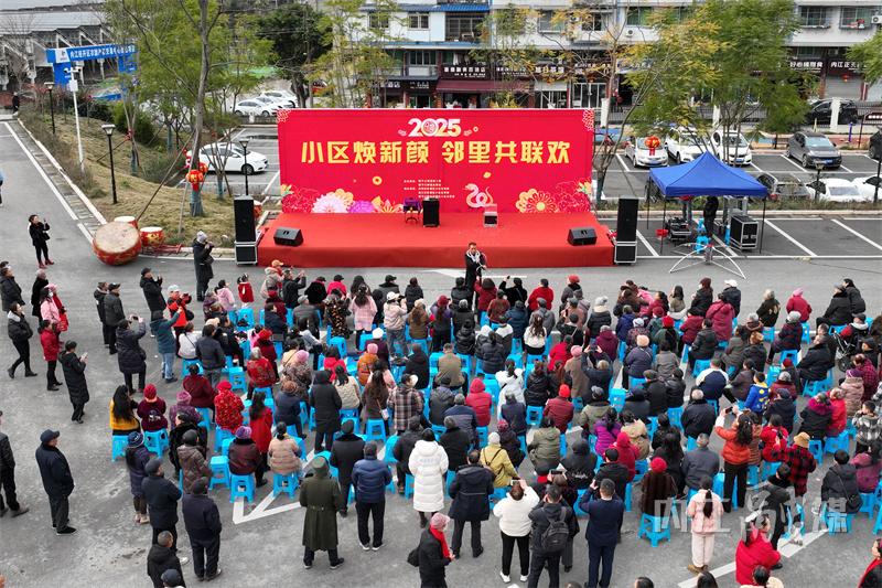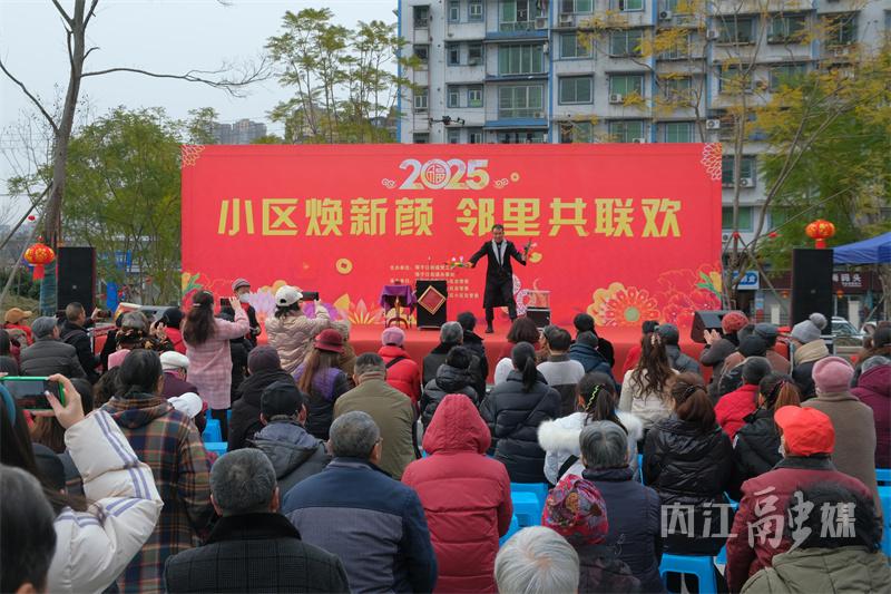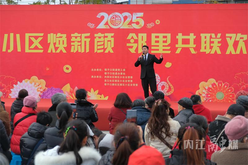 1月26日,内江经开区壕子口街道贤山家园,红灯笼高高挂起,彩带飘扬,洋溢着喜庆的氛围,一场迎春联欢活动在这里热烈举行。来自街道的圣江、内铁、壕子口路等社区的居民欢聚一堂,共同迎接新春佳节的到来。
