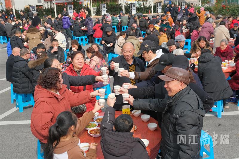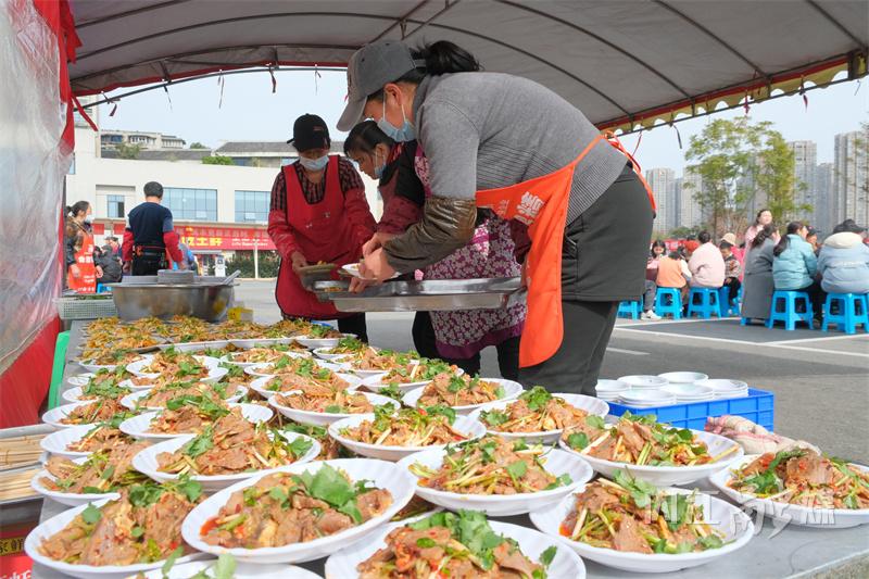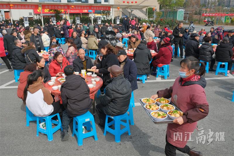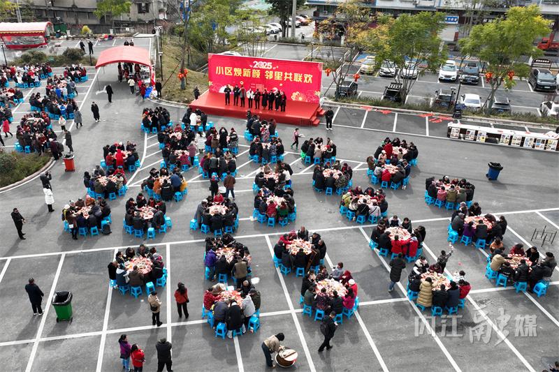 活动现场,50桌坝坝宴整齐排列开来,每张餐桌上都摆满了色香味俱佳的美食,居民们围坐一起,品尝着美味,畅谈着家常,享受着难得的邻里相聚时光。