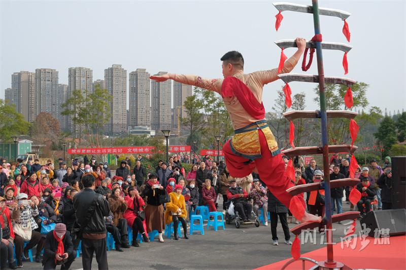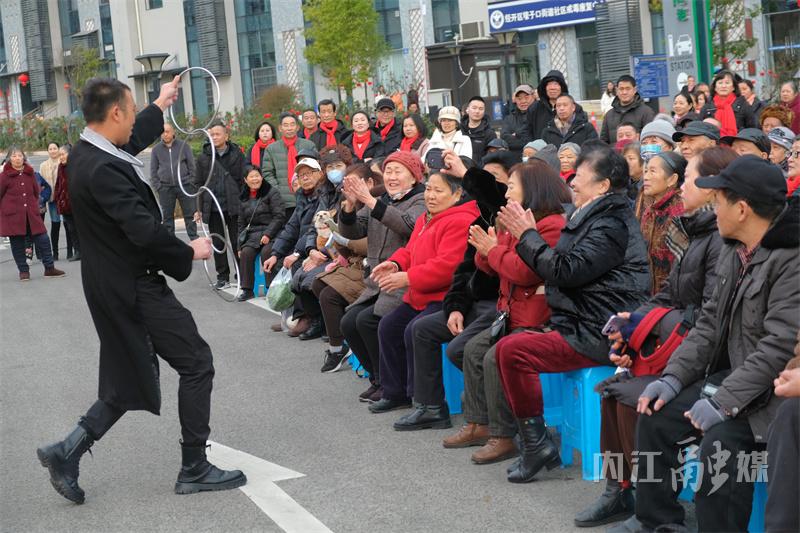 联欢活动的重头戏当属文艺表演。居民们自编自演的舞蹈、歌曲等节目轮番上演。舞台上,居民们翩翩起舞,歌声悠扬,赢得了现场观众的阵阵掌声。川剧变脸、魔术表演、杂技表演等精彩节目更是让人目不暇接,观众纷纷惊叹于演员们的精湛技艺,现场掌声雷动,喝彩声此起彼伏。