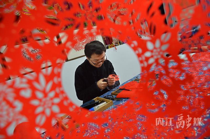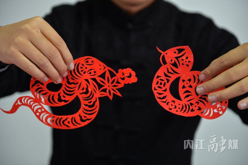 我们的节日·春节丨内江“非遗”传承人向市民赠送200幅蛇年剪纸