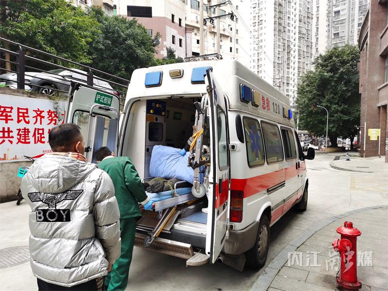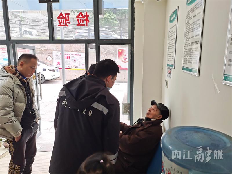 在诊所等待期间,李华富除了头晕和腿软外,并未出现更严重的症状,这让黄银松和周围居民稍稍松了口气。11点30分左右,李刚的亲友和内江市市中区人民医院的救护车几乎同时到达。在黄银松和热心居民的协助下,急救人员将李华富带回医院进一步检查。