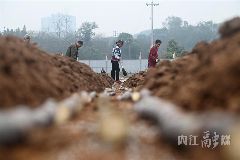 2月17日,位于内江市市中区史家镇四美桥村的成渝地区双城经济圈——内江现代农业科创示范园项目现场一派繁忙景象。村民们正在科研试验基地内忙着种植甘蔗,这片15亩的土地将被打造为四川省甘蔗种质资源圃,成为甘蔗界的“种子基因库”。