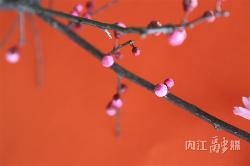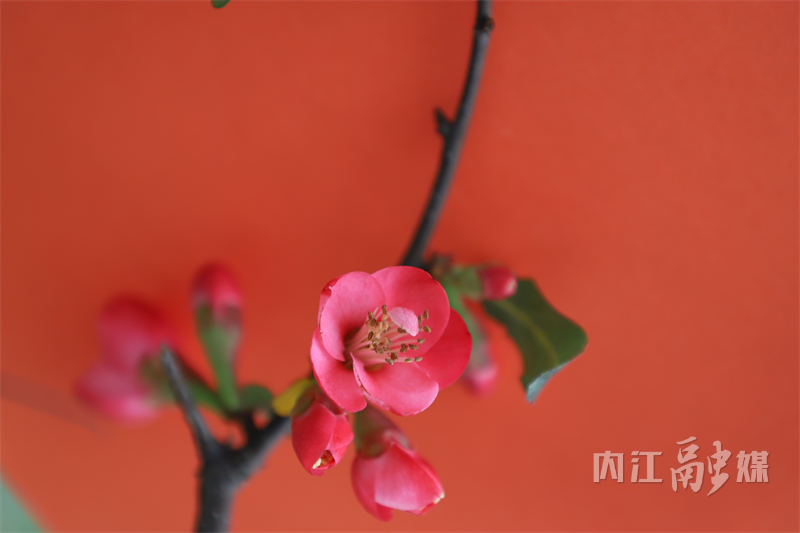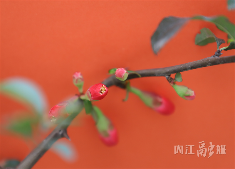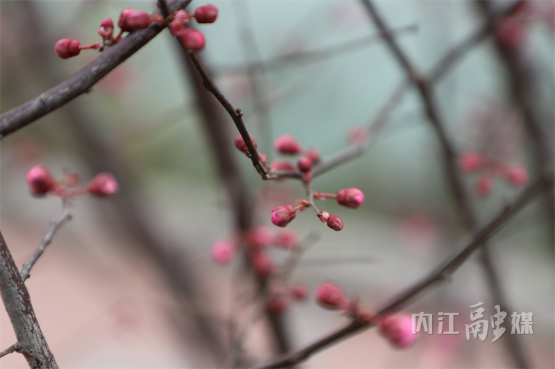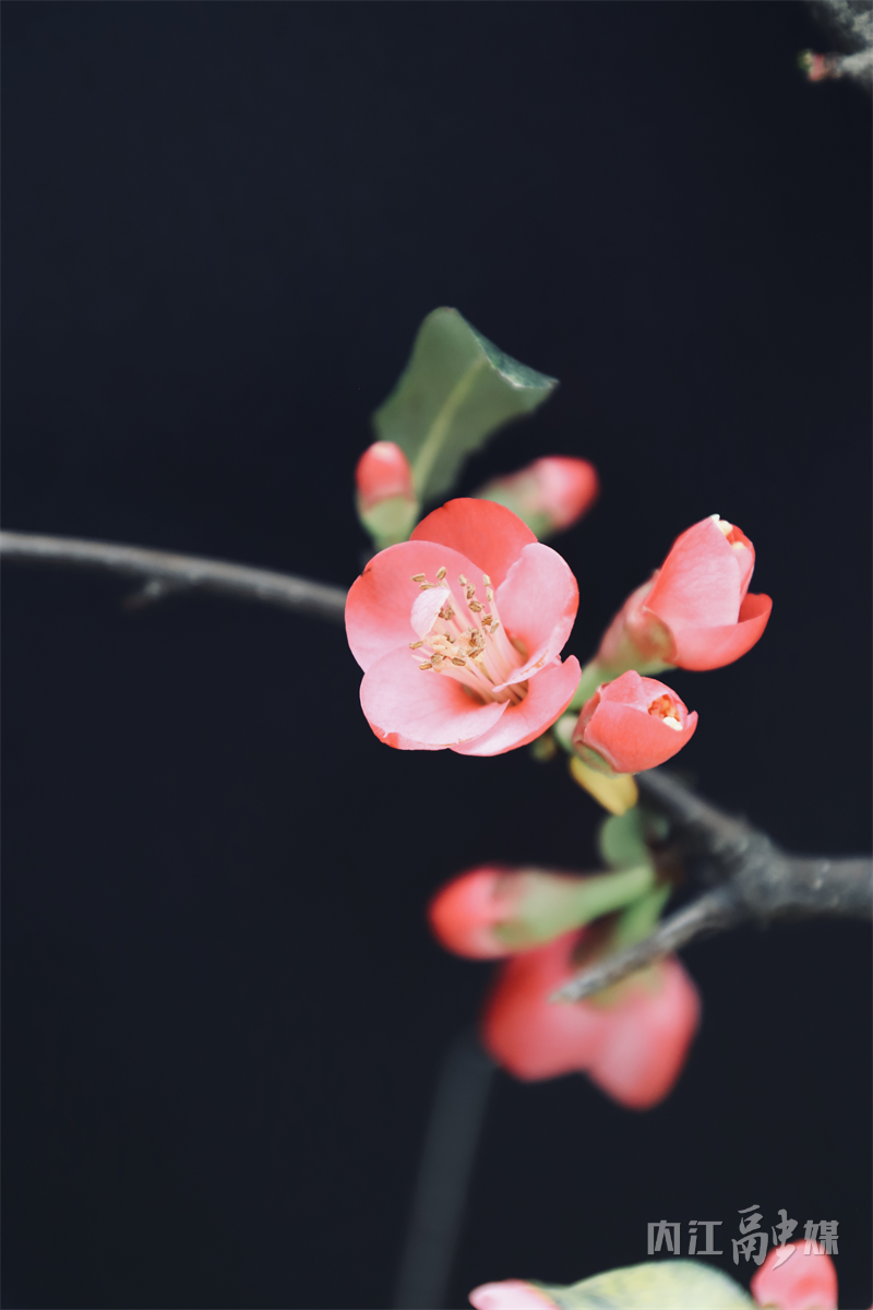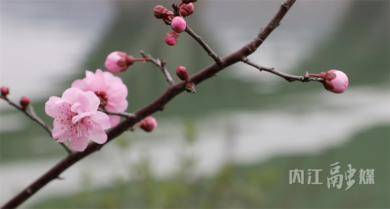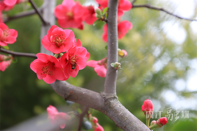 岸堤边,与美人梅一同绽放的还有贴梗海棠,其桃红的花朵与嫩绿新叶交织,形成一条条“花廊”。据悉,贴梗海棠的花期通常在每年的3月至5月之间,美人梅的花期则在3月与4月之间。最近,随着天气与气温的变化,贴梗海棠与美人梅早早地绽放枝头,共同构成内江早春的“双绝”景观。同时,可以看见的是,沱江沿岸的美人梅和贴梗海棠除绽放的花朵外,枝头还有不少花骨朵含苞待放,宛若星点,以沱江为绿色幕布,谱写生命的交响曲。