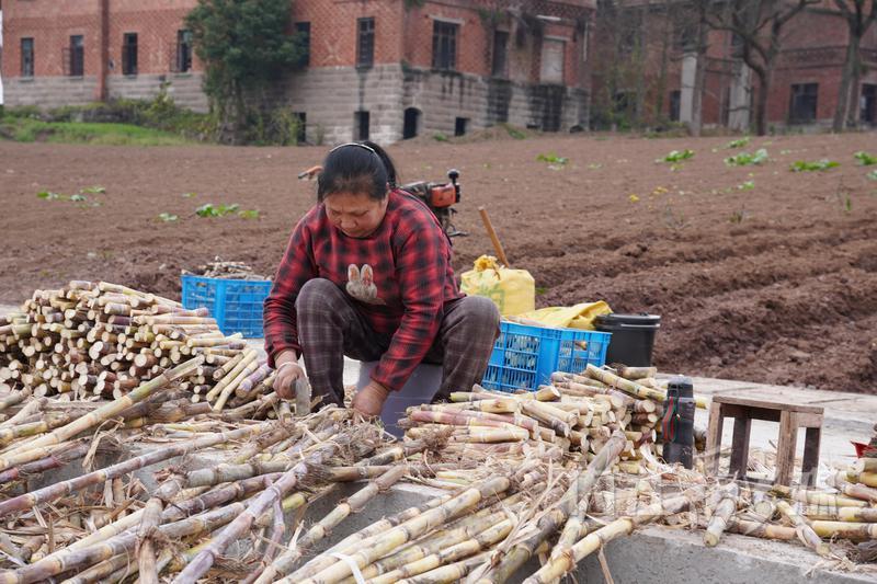 2月18日,位于内江市市中区史家镇四美桥村的成渝地区双城经济圈——内江现代农业科创示范园项目现场,村民们在科研试验基地内种植甘蔗,这片15亩的土地将被打造成四川省甘蔗种质资源圃,播种期为10天。