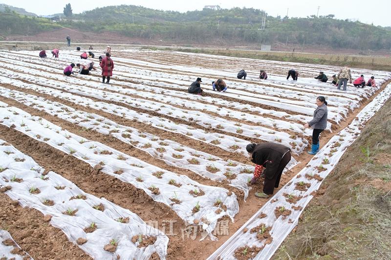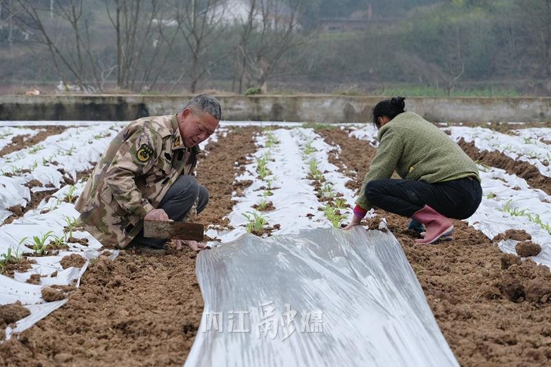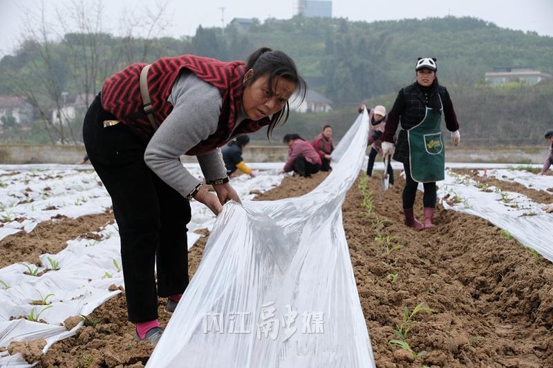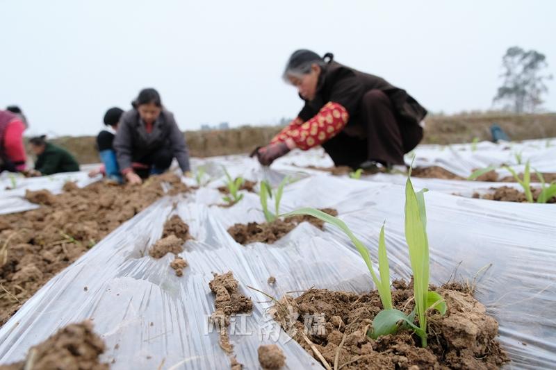 翻整土地、栽苗施肥、覆盖地膜……2月18日,在东兴区平坦镇水梨村的田间地头,村民们开始新一年的春耕,种植新一季鲜食糯玉米,播撒今年增收的希望。