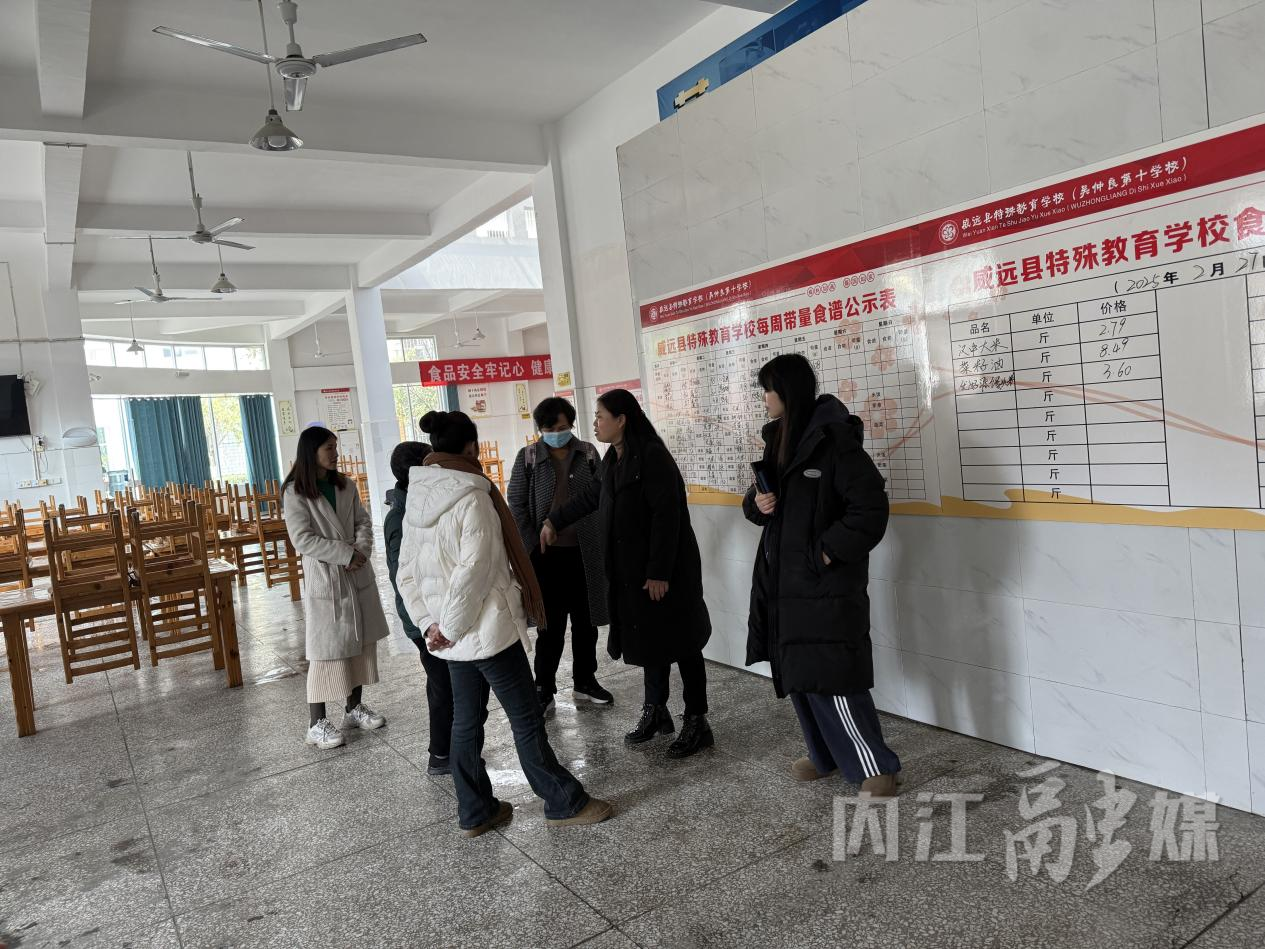 威远县特殊教育学校膳食监督家长委员会作为连接学校、食堂与学生及家长的重要桥梁,承担着监督食堂运营、提升餐饮服务质量、确保学生饮食安全的重要职责。会前,学校党支部书记、校长沈泽花带队,邀请膳食监督家长委员会成员对食堂进行了实地参观检查。大家重点检查了食品原料采购、储存、加工、留样;参观了食堂后厨设施配备、环境卫生;实地察看了餐厅消毒和餐(用)具清洗消毒流程。膳食监督家长委员会成员直观地了解到食堂的具体运作和食品安全管理措施,增强了对食堂的信任感。