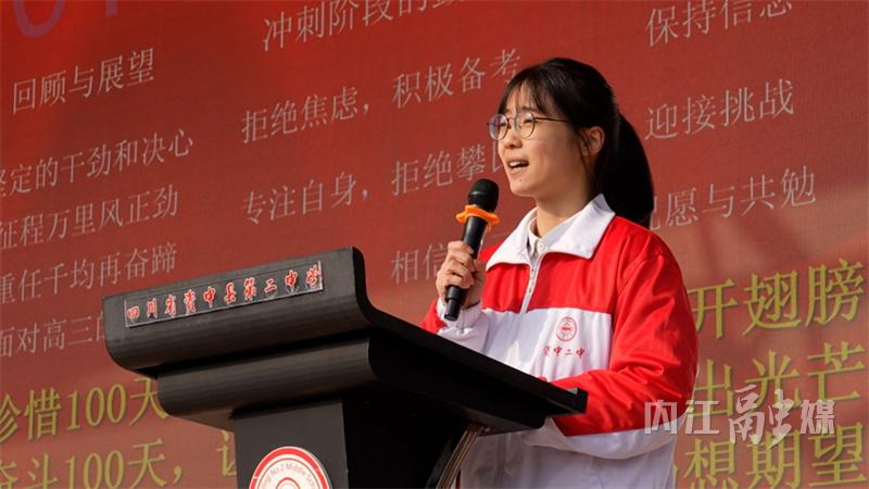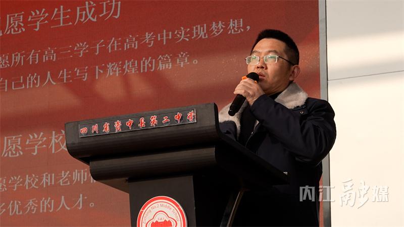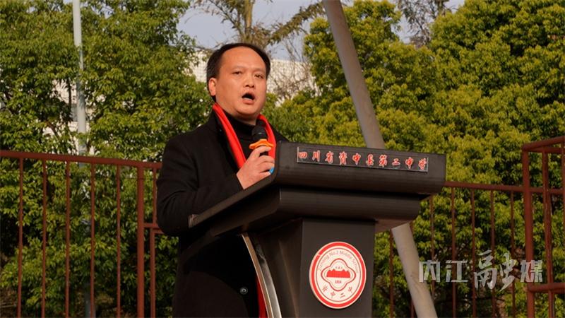 资中二中党委书记伍文森发表了题为“百日锋芒砺剑正当时 十八韶华擎旗担天下”的致辞。他以三个“从今天起”勉励学生们肩负起家国使命,以“擎旗者”的姿态奔赴人生新阶段。伍文森强调,从今天起,学生们应以法为尺、以德为镜,涵养“大我”格局,以担当精神砥砺前行。他充分肯定了学生们三年来取得的成绩,并鼓励他们在高考百日冲刺的关键时刻,蓄势待发,迎接挑战。