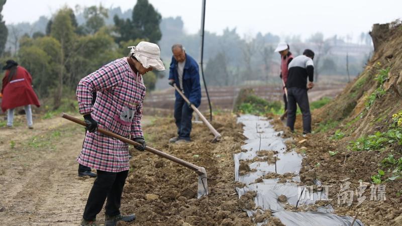 2月28日,威远县镇西镇核丰村,乡间田野透着春耕生产的气息,十余位村民忙着翻耕、管护、播种、覆膜等春季农事。