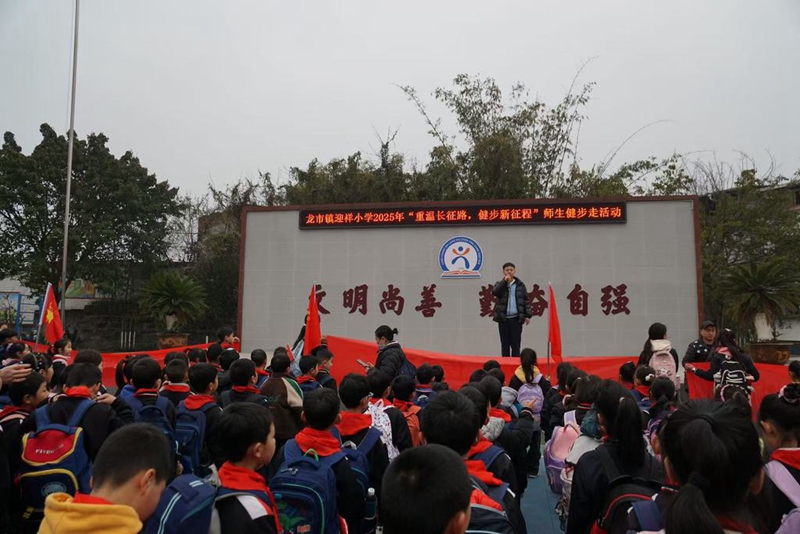 近日,隆昌市龙市镇迎祥小学开展了以“重温长征路、健步新征程”为主题的研学实践健步走活动。此次活动旨在通过健步走的形式,让学生们在锻炼身体的同时,感悟伟大长征精神,厚植爱国情怀,传承红色基因,争做强国少年。