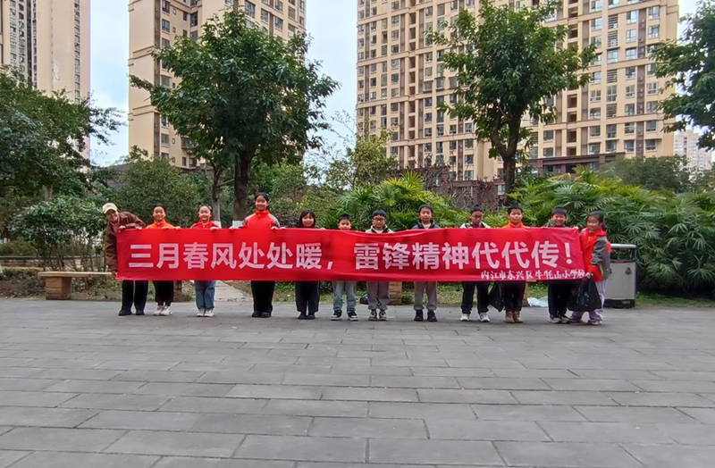 东兴区牛牦山小学开展“传雷锋旗帜,扬助人精神”主题活动。清晨,学生代表在国旗下献词,诉说对雷锋精神的敬仰。随后,各中队开展特色活动,交流对雷锋精神的理解。最后,同学们走进社区开展志愿服务,认真清扫街道、清理垃圾,用行动诠释雷锋精神,收获居民点赞。