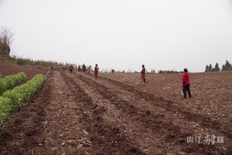 3月4日,记者在位于全安镇书房湾村的陆秀园种植家庭农场看到,斜坡上昔日沉寂的土地,如今呈现出一派热火朝天的春耕景象,村民们挥舞着锄头,忙碌着翻土、播种、掩土等。“每个窝里要放两颗种子”,家庭农场负责人陆生在一旁有序指挥着。