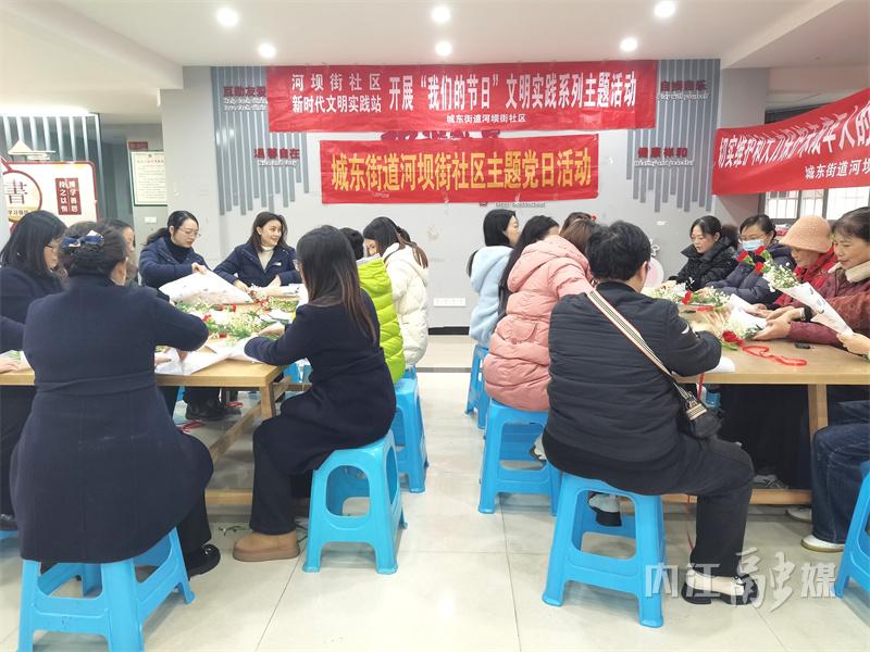 在第115个“三八”国际妇女节即将到来之际,3月5日,内江市市中区城东街道河坝街社区开展了“巾帼新时代”主题活动。社区女干部、辖区企业女职工、女居民等欢聚一堂,做手工、拉家常,在温馨的氛围中度过了一段难忘的时光。