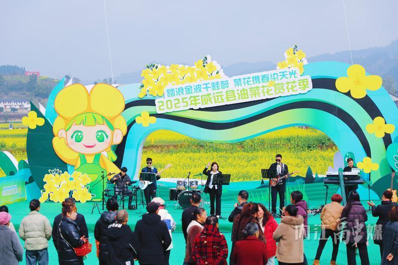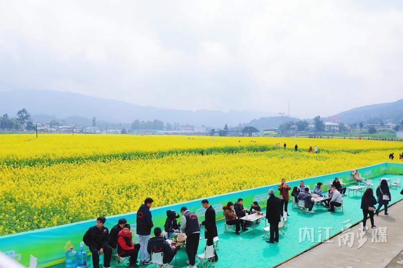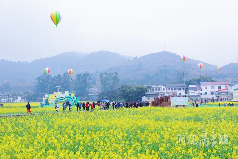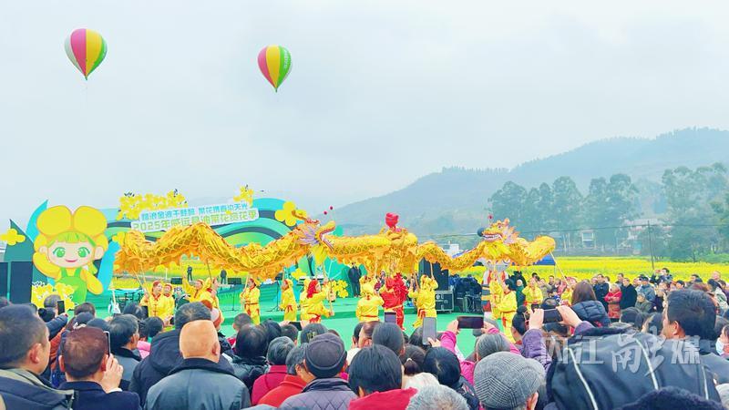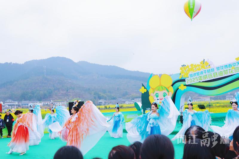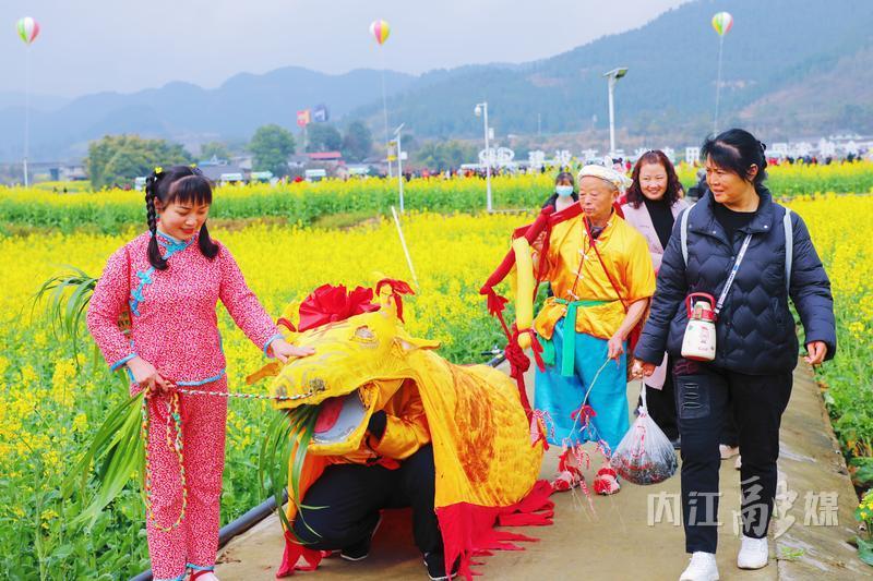 活动中,欢快的舞蹈在田间跃动,流行歌曲在油菜花海中悠扬唱响。川剧绝活《吐火》、舞龙、牛灯舞等节目相继上演,为游客带来一场视听盛宴。游客欣赏精彩演出、品尝特色美食、挑选特色产品,享受难得的乡村休闲时光。