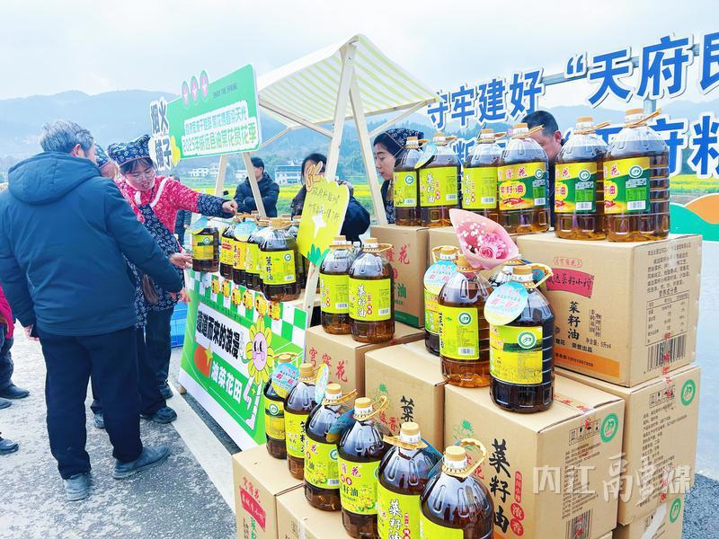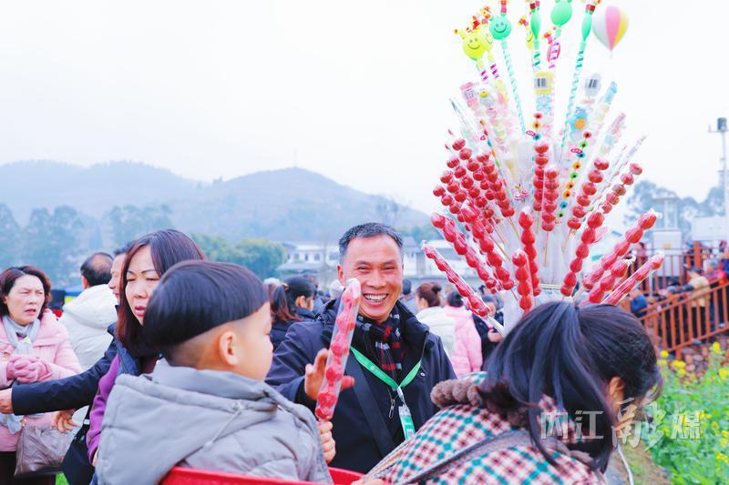 “以花为媒”,延伸出“春日经济”。现场的春日集市十分热闹,汇集了黄老五花生酥、萝卜干、菜籽油等威远特色产品。卖菜籽油的摊主告诉记者,上午他们卖了60多桶菜籽油。